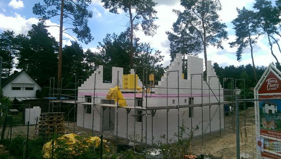 Also hatten sie eine Vereinbarung getroffen: Traumhochzeit für Traumhaus. Als erstes wurde die Hochzeit vereinbart und geheiratet. Das war vor fünf Jahren. Nun musste Doreen ihr Versprechen einlösen. „Verdammt“, dachte sie sich damals, „Du hast den Deal gemacht, nun musst Du um die Ecke kommen und zu dem Hausbau stehen.“ Sie hatte Angst vor dem Kredit, hat jedoch die Initiative für das Projekt Hausbau mit der Suche nach einem Grundstück gestartet. Beiden war klar, dass sie zunächst ein Grundstück und eine Baufirma brauchen. So hat sich die Berliner Familie im Süden von Köpenick nach Baugrundstücken umgesehen und verschiedene Baufirmen angesehen. Um die Angebote vergleichen zu können, haben sie sich die Kosten für den gleichen Haustyp ausrechnen lassen. Die Suche nach einem Grundstück hat sich jedoch erst einmal als schwierig herausgestellt, denn beide wollten nicht in ein Neubaugebiet und nicht weiter als KW – Königs Wusterhausen. Die erste Baufirma, die sie kontaktiert hatten war Town & Country Haus. Das Angebot hatte gepasst und Herr Wotke von dem Lizenzpartner Musterhaus Zeuthen war ihnen sympathisch. Daher haben sie ihn schließlich nach Baugrundstücken gefragt.